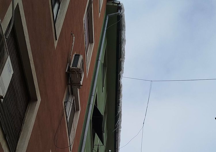 Usled porasta temperatura i otapanja snega i leda sa krovova, Gradska uprava za inspekcijske poslove preventivno postavlja trake upozorenja oko pojedinih javnih objekata.