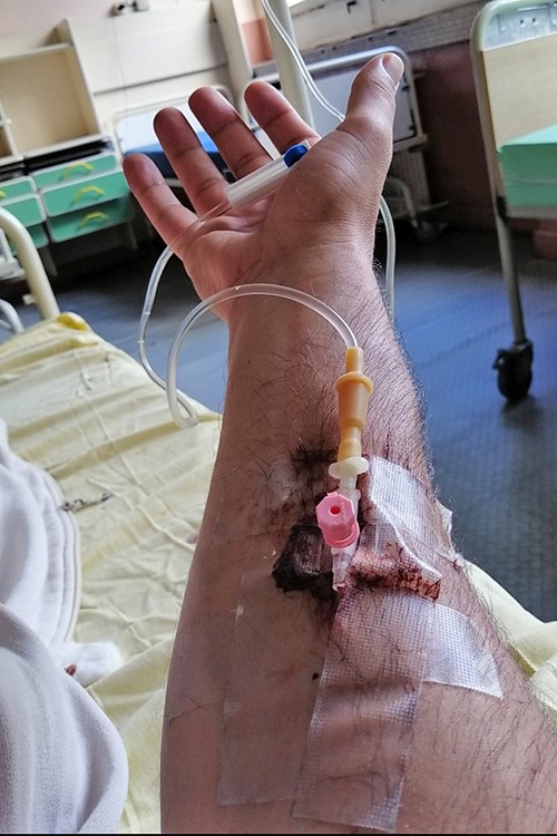 Smestili su ga u šestokrevetnu sobu i priključili na infuziju kroz koju je dobijao paracetamol za skidanje temperature, antibiotike i vitamine. Do kraja boravka u bolnici svi su pili vitamine C i D, cink i fluimucil za razređivanje sekreta u plućima.