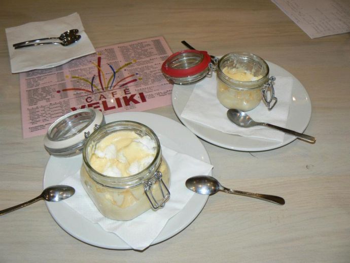 U njihovom meniju on se zove “Snajkine šnenokle“, služi se u činijicama i servira sa prelivom od karamela. Jedna porcija staje 340 dinara, ali je u pitanju baš velika količina, dve velike kugle od belanaca sa čak 340 ml žutog krema.