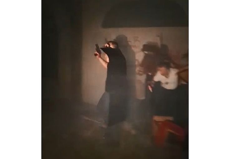Kako se vidi na snimcima koji su se kasnije pojavili na društvenim mrežama, čim su se muškarci koji su držali stolice i pištolje u rukama identifikovali kao policija, građani su se razišli.