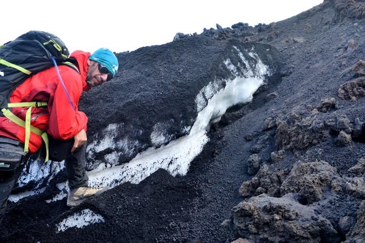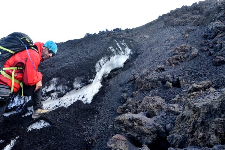 Red vatre, red leda, red vatre – lanjski sneg na padinama Etne, kojeg su od topljenja sačuvali lapili – fragmenti lave