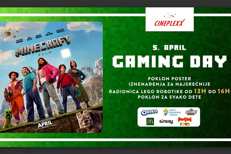 Jedna od najprodavanijih video-igara svih vremena, Minecraft, stiže prvi put na bioskopsko platno, nudeći uzbudljivu novu perspektivu prepunu akcije, humora i neverovatne vizuelne estetike. Tim povodom, u bioskopu Cineplexx Promenada, organizovan je Gaming Day u subotu, 5. aprila od 12 do 17 časova uz poklone i radionicu Lego robotike. Ulaznice za “Minecraft film” su u prodaji!