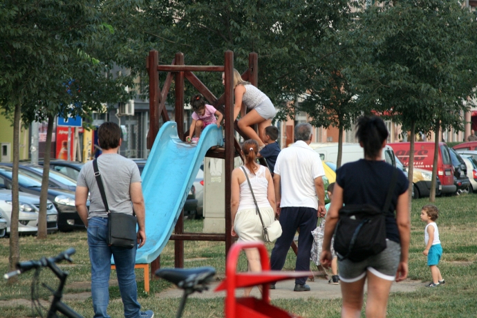 – Mi smo blizu parka, tu sa Limana, i deca vole da se igraju ovde. Fali hlada, ali ne možeš imati sve  – kaže nam pomirljivo mama Ivana, sa klincima od tri i pet godina. Komentariše da se obično tu igraju prepodne, a kada je dan ekstremno vreo, odvede decu na Spens da se vozaju na žetone. Ponekad idu na Štrand, jer, kako kaže, “tu ode najviše para”.