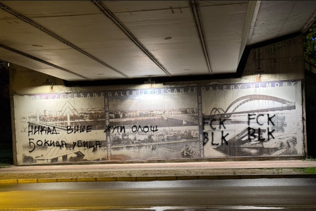 Ne zna se šta je gluplje i bezobzirnije, da li pisanje političkih grafita po ,,Galeriji Sećanje’’, obeležju o NATO agresiji ispod Varadinskog mosta ili skrnavljenje ulaza zgrada i prelepljivanje saobraćajnih znakova papirom većeg formata izolir-trakom i nalepnicama, ujedno i izazivanje opasnosti po učesnike u saobraćaju.