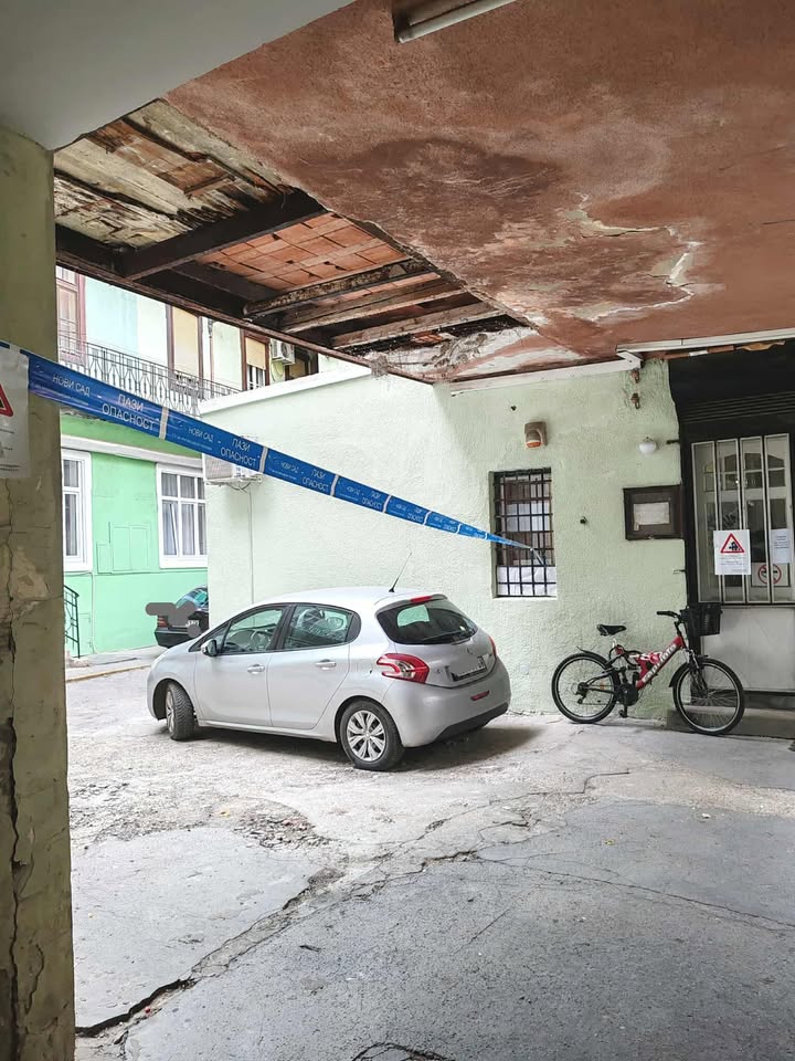 Po mrljama na plafonu se vidi da je voda uništila plafon. To se inače dešava sa starim zgradama gde cev počne da curi. To su privatne zgrade, pa nek se stanari brinu u vezi njenog održavanja. Eh koliko ima privatnih zgrada po gradu koje imaju javni pasaž. Da li to stanari čekaju nekog drugog da im reši održavanje? Ako je objekat pod zaštitom, onda treba javiti zavodu. Što se čekalo do sada? Ove nedostatke je lako uočiti unapred baš zbog tih mrlja od vlage. To što vi samo čekate neku "Nadstrešnicu 2" to više govori o vama koji objavljujete ovakve megafone. Objava je blago rečeno prepuna politikanstva.