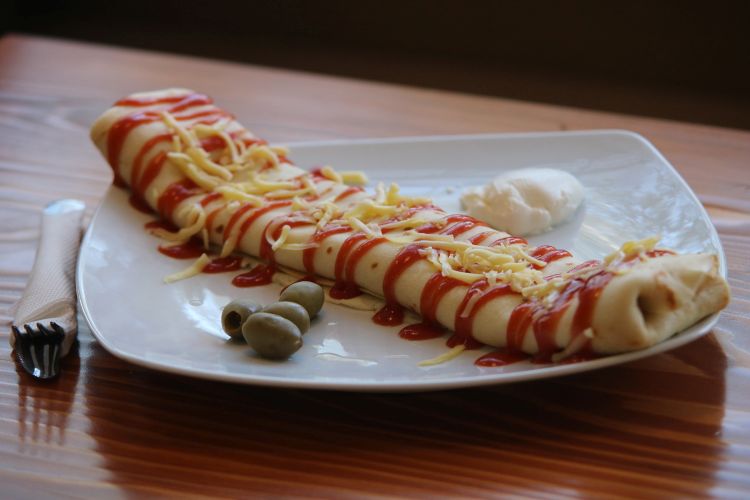 Polumetarski delikates ubrzo se našao na stolu. “Borba” je bila žestoka, ali je na kraju ipak pobedila palačinka jer nismo uspeli celu da je savladamo. Em što je velika, em što u “slanoj varijanti” teži ravno pola kilograma i ima u sebi oko 100 grama trapista.