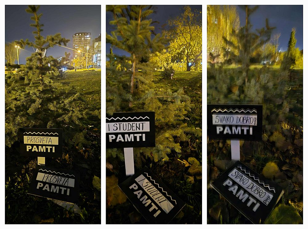 Navode da su nepoznata lica preksinoć izlomila table kod 16 borića koje su zasadili 26. oktobra, u znak sećanja na 16 ljudi i dece koji su nastradali pod nadstrešnicom železničke stanice u Novom Sadu 1. novembra prošle godine.