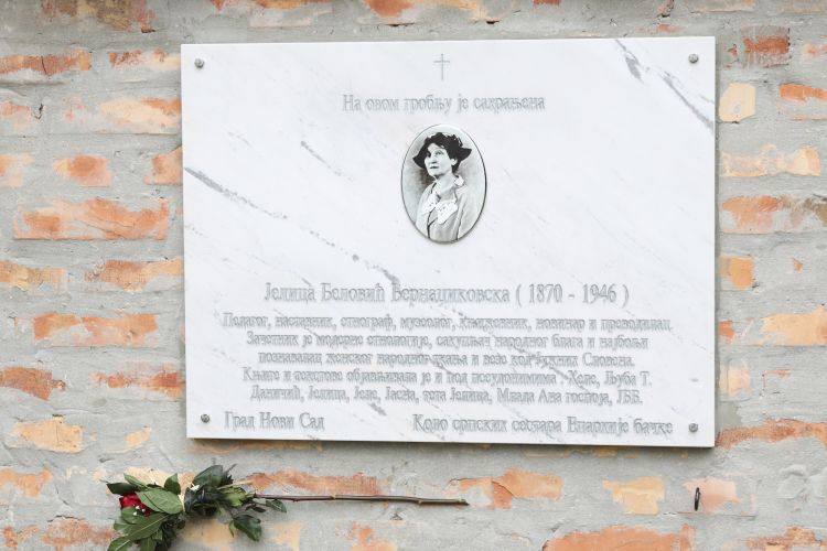 Spomen-ploča Jelici Belović Bernadžikovskoj, etnografkinji, književnici, nastavnici, urednici, feministkinji… otkrivena je danas na Uspenskom groblju u Novom Sadu, na kom je i sahranjena.