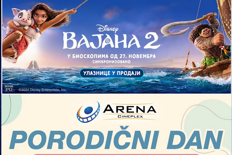Nakon osam godina od prikazivanja prvog dela filma o devojci Vajani i polinežanskoj kulturi, Dizni je osmislio nastavak priče koji stiže na veliko platno bioskopa Arena Cineplex. Povodom filma “Vajana 2” organizovan je Porodični dan u nedelju, 1. decembra od 12h do 17h, uz besplatnu kreativnu radionicu i poklone za sve mališane. Ulaznice u prodaji