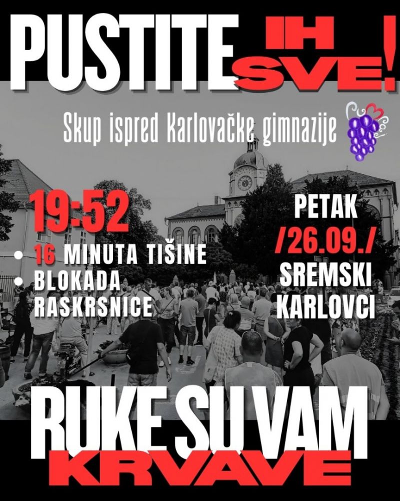 Meštani Sremskih Karlovaca će i sutra odati poštu poginulima u večernjim satima – od 19.52 do 20.08, istovremeno tražeći oslobađanje političkih zatvorenika: