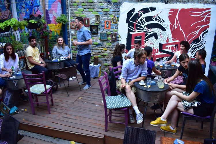 – Osamdeset posto ljudi kod nas su stalni gosti, naročito ove godine kada baš nema turista. Svi se mi već poznajemo i znamo šta naši gosti žele. Mesto je takvo da nema baš smisla da svaki lokal organizuje događaje za sebe, čak nema smisla ni da ako pored dovedu di-džeja da mi ne uvežemo naše zvučnike na njihove. Malo je teže napraviti svirke jer je teško postaviti bend tako da svira za tri bašte, zato su di-džejevi bolja varijanta. S tim da to nije baš elektronika, puštaju se hitovi, fank, blaži pank, metal i rok. Ranije je bilo manjih trodnevnih festivala, ali ove godine, u ovim uslovima, to nije bilo moguće realizovati. Pored muzičkih događaja, pravimo i izložbe slika pa su tako kod nas izlagali studenti sa Akademije i mnogi lokalni umetnici. Izložbe traju minimalno dve nedelje i neke slike se i prodaju, evo recimo upravo je jedna slika Sare Dimitrijević otišla za Panamu – objašnjava Milan Jevtić.
