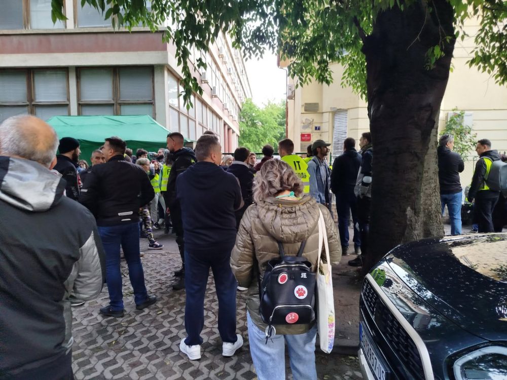 Opremljeni su transparentima, a neki i prslucima i zaštitnim maskama. Povremeno prave buku pištaljkama i iščekuju dolazak sudija.