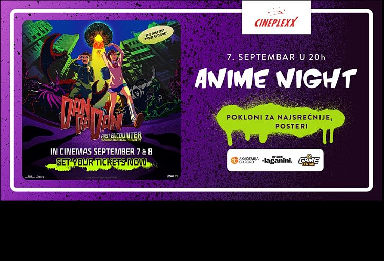 Novi Anime Night događaj u bioskopu Cineplexx Promenada uvodi nas u priču o okultnoj borbi tinejdžera i donosi poklone za sve posetioce u subotu, 7. septembra od 20 časova. Ulaznice za “DAN DA DAN: First Encounter” (titlovano na engleski jezik) su u prodaji!