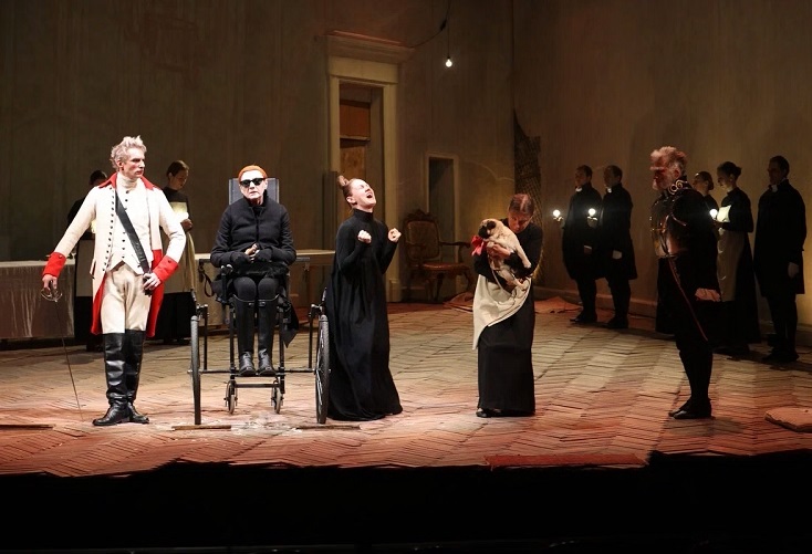 Dvanaesti utisak: Emigracija, u ovom slučaju ruska, koja je činila bar 95 odsto publike, uvek ima dodatno emotivne motive da ono što dolazi iz domovine gleda povišene duševne temperature. Pogotovo ako dolazi iz Sankt Peterburga, umetničkog srca Rusije, ali i mesta inteligentnog otpora režimu. Bilo je dirljivo videti koliko su se povezali sa tekstom i koliko im je dolazak ovih umetnika lekovit. Kao i oni, egzaltirani bi bili možda i ostali – ruski negovoreći auditorijum, samo da je razumeo dijaloge, a nije. Govorilo se pak o nekoliko dana u životu plemićke porodice Plavutin-Plavuncov na dvoru cara Pavla I. Kombinujući istorijske zapise, psihološku (melo)dramu i (tragi)komediju, reditelj Andrej Moguči je, da bi istražio fenomen “holopstva” – podaništva, objedinio tri veka, skicirajući tako na sceni živote ljudi koji nestaju u žrvnju velike istorije: i onih koji imaju potrebu da ugnjetavaju, i onih spremnih da do neslućenih granica trpe, a upravo to je intrigiralo reditelja kada je izabrao komad Pjotra Petroviča Gnjediča iz 1908. godine, čije mu je scensko čitanje donelo niz nagrada u Rusiji. U Novom Sadu – donelo mu je ovacije ruske dijaspore.