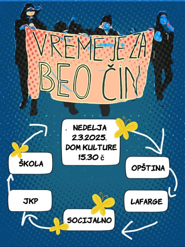 Meštani Beočina okupiće se u nedelju u 15.30 kod Doma kulture. Nakon 15-minutnog pomena, krenuće šetnja podrške studentima, sledećom rutom: