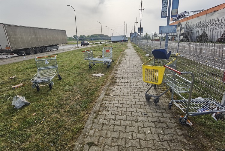Reporter 021.rs je zatekao velike količine smeća koje je ostalo razbacano po travi i asfaltiranim površinama, kao i ostavljena kolica iz marketa. Za to vreme, obezbeđenje obilazi ovaj prostor, a sa strane stoje građani koji se nadaju da će ih pustiti da ponovo uđu i pokupe stvari koje su ostale sa zadnje strane objekta gde je magacin ili u otvorenom prostoru gde se obavljao istovar i utovar.