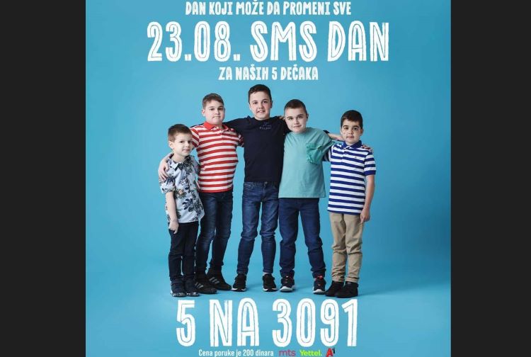 Jedan dan vašeg života može promeniti život petorici dečaka, a njihovi životi mogu promeniti svet! Važno je da 23. avgusta pošaljete SMS sa sadržajem “5” na broj 3091!