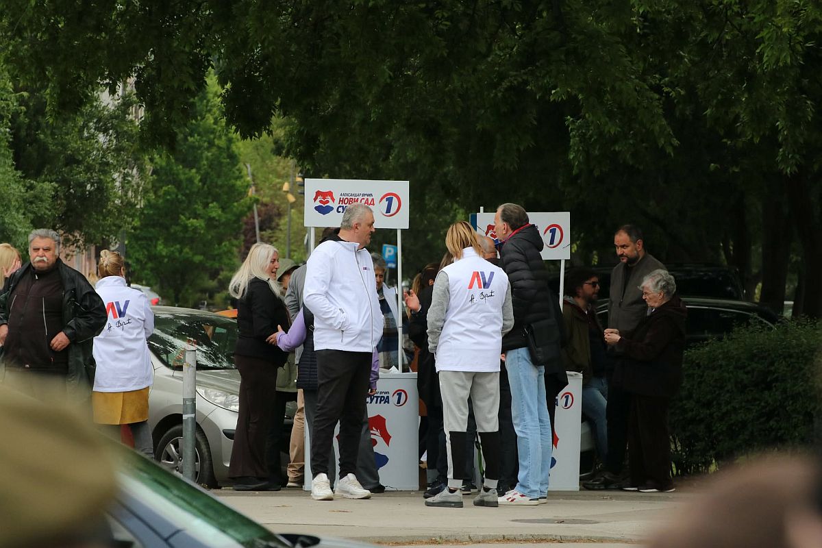Ispred Limanske pijace je već postavljen štand i u 9 je počelo deljenje nalepnica koje će trajati do 12 časova.