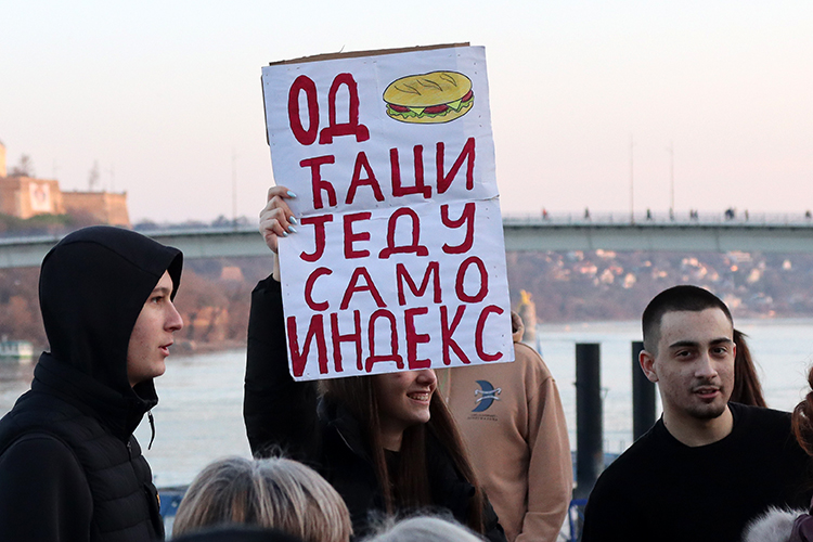 Studenti povodom Vučićevog dolaska u Novi Sad: Jedini pravi indeksi koji naprednjaci drže su sendviči