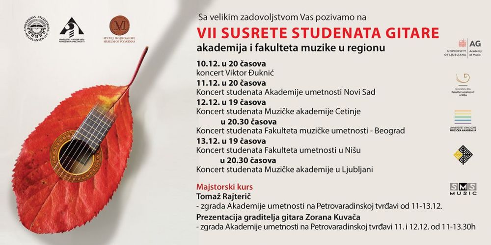 Sedmi susreti studenata gitare akademija i fakulteta muzike u regionu održaće se u Muzeju Vojvodine i na Akademiji umetnosti Novi Sad od srede, 10. do subote, 13. decembra.
