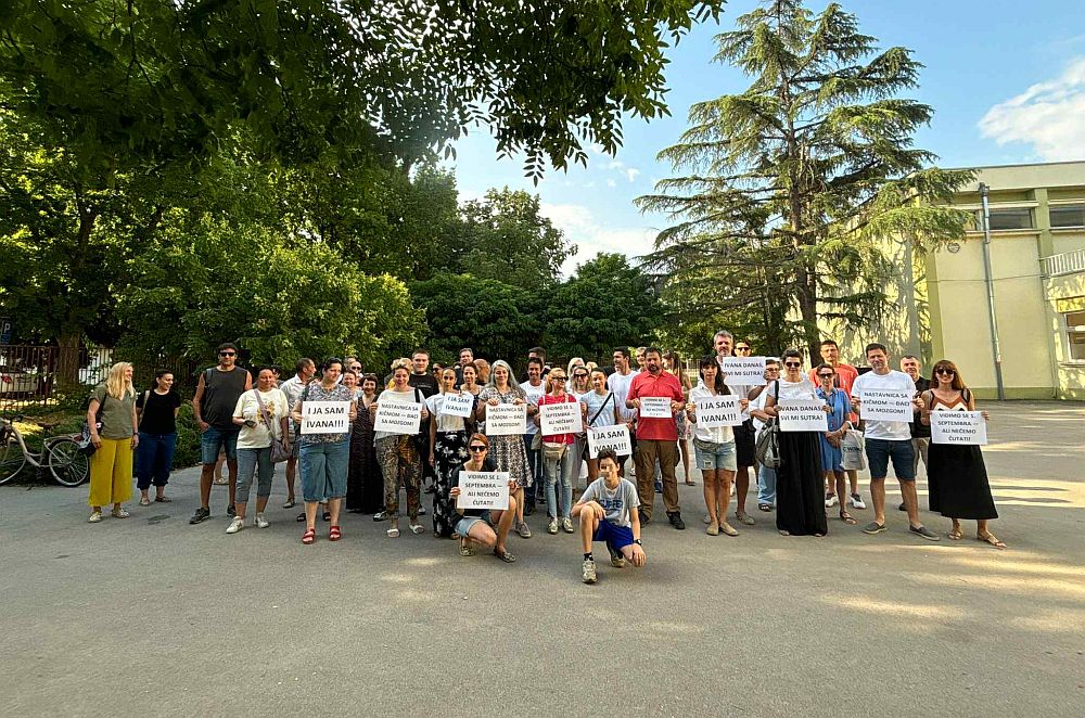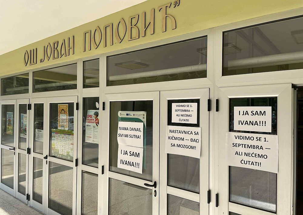 Roditelji su nosili parole: “I ja sam Ivana”, “Ivana danas, svi mi sutra”, “Vidimo se 1, septembra, ali nećemo ćutati”, “Nastavnica sa kičmom – đaci s mozgom” koje su zalepili na ulaznom vratima.