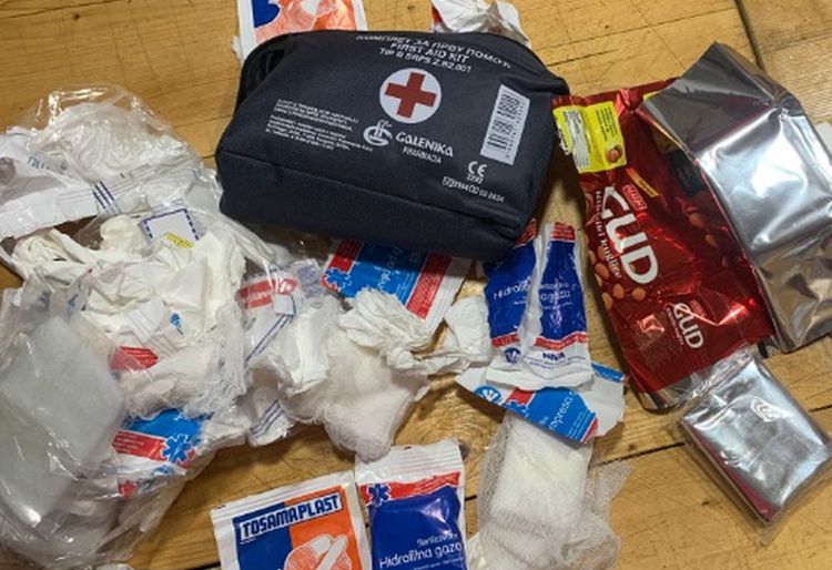 U paketu za prvu pomoć pronašli ubruse, papir i praznu kesicu kikirikija