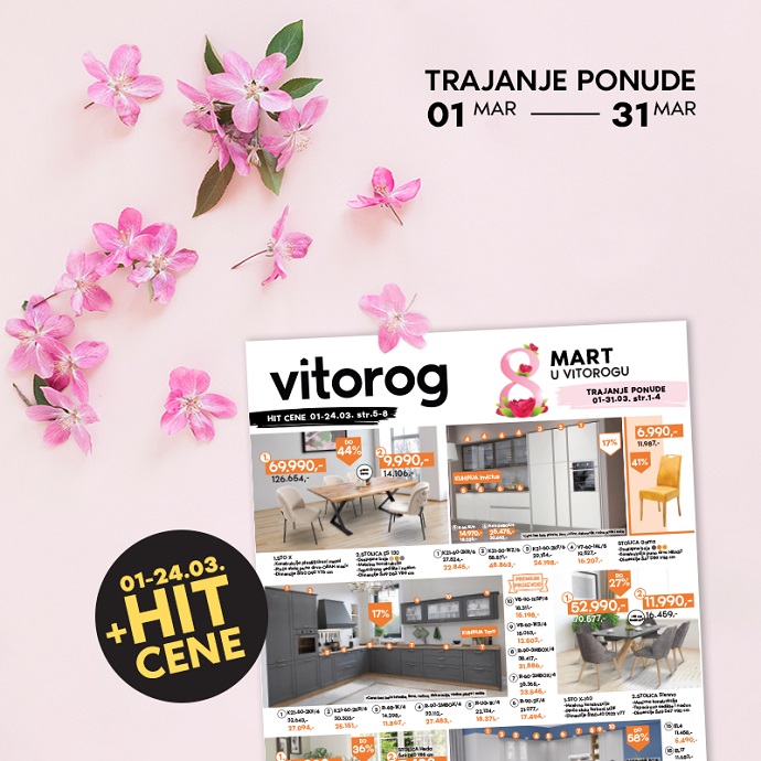 Tim povodom, od 8 do 13. marta Vitorog vam daruje DODATNE POPUSTE u vrednosti od 5 do 20 posto.