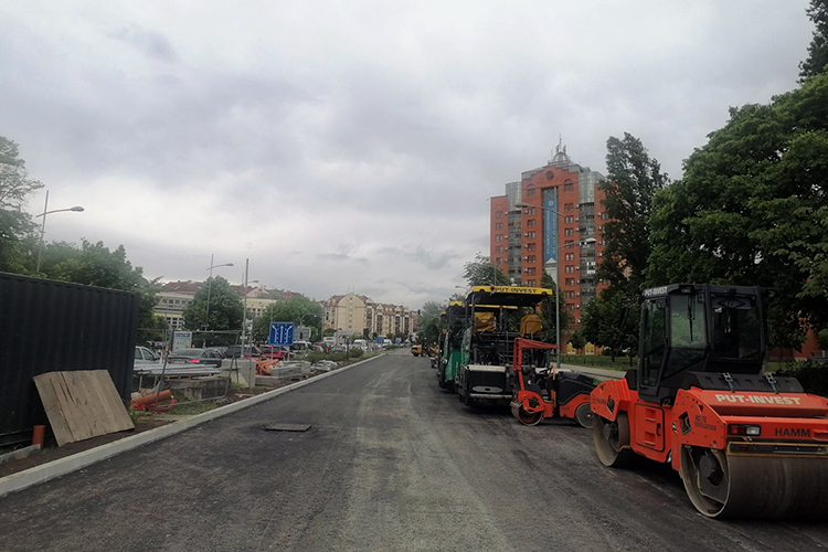 U okviru radova na izgradnji kružne raskrsnice, na delu Fruškogorske ulice i delu Bulevara cara Lazara postavljena su oba sloja bituminiziranog nosećeg sloja (BNS) i u toku je priprema za izradu završnog sloja.
