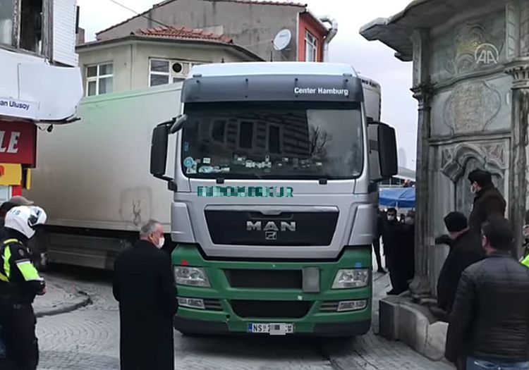 Kamion novosadskih registarskih tablica zaglavio se u istanbulskom kvartu Uskudar, poznatom po uskim ulicama.