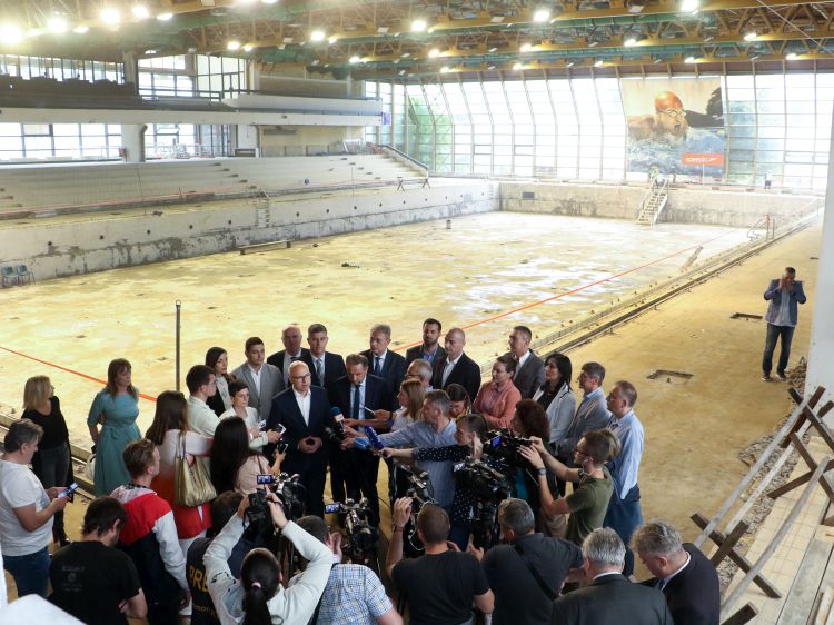 Gradonačelnik Novog Sada Miloš Vučević i ministar trgovine, turizma i telekomunikacija Rasim Ljajić obišli su radove na rekonstrukciji olimpijskog zatvorenog bazena na Spensu.